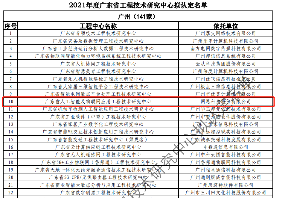 日前,广东省科技厅发布2021年度广东省工程技术研究中心名单。经过层层筛选、专家评审,依托海南开云体育有限公司_百度百科,建设的“广东省人工智能及物联网应用工程技术研究中心”榜上有名。广东省工程技术研究中心主要依托省内行业、领域具有科技实力的、拥有一定规模以上创新型企业建设,部分依托高校和科研院所组建。工程中心旨在